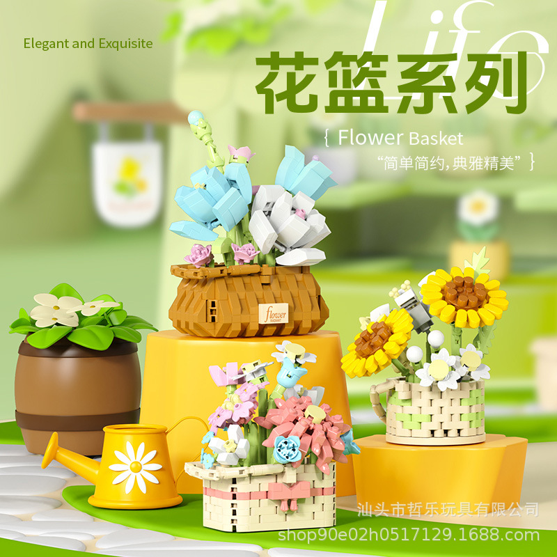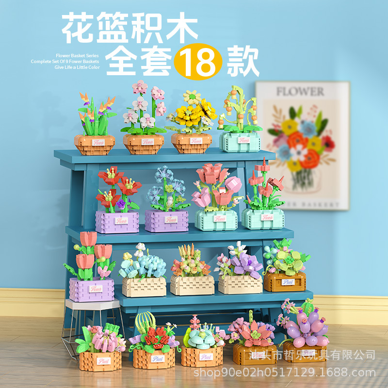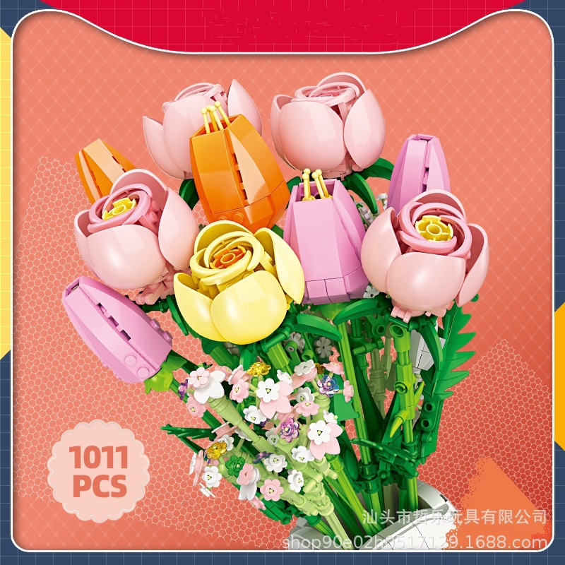 クロスボーダーの人気バラの花束植物の鉢植えの小さい置物の贈り物のおもちゃはレゴの小さい粒子の積み木の卸売りに互換します。