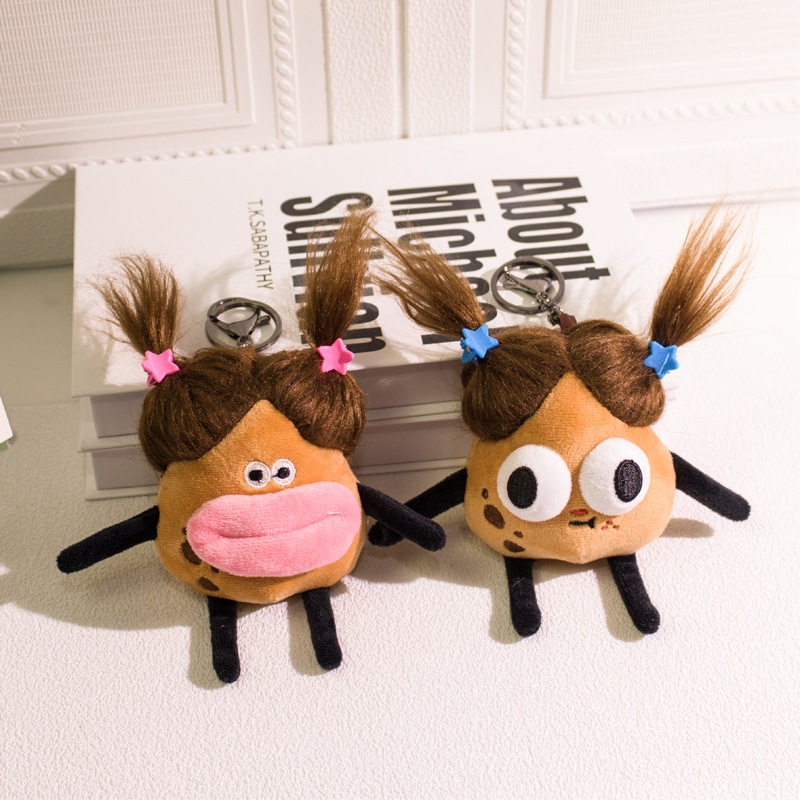 ネットの赤い揚げ毛のジャガイモの子のキーホルダーはソーセージの口の学生のかばんをからかって男女の美しい車のキーチェーンを掛けます。