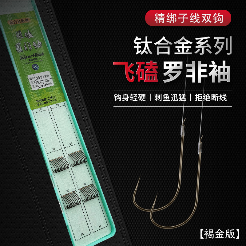 箱入りチタン合金羅非袖完成品子線二重フック台釣り黒坑炭素素手作業で縛られた完成品釣りフック
