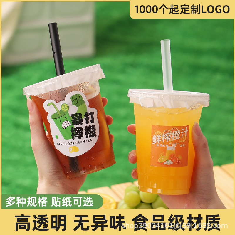 インターネット有名人ペット使い捨て冷たい飲み物オレンジジュースレモンティーフルーツティーミルクティーコーヒー透明包装カップ蓋付き