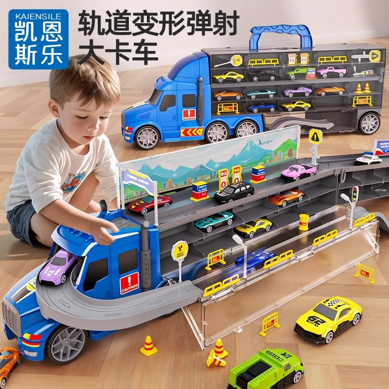 子供用レールカーおもちゃ 変形射出式大型トラック 建設車両 レール駐車場 合金車 男の子 3歳4歳