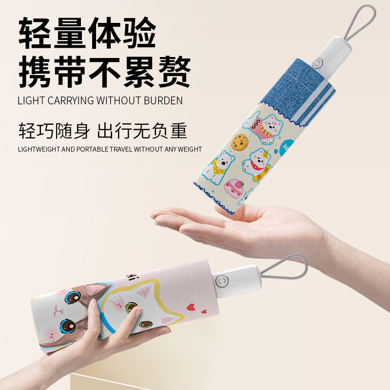 日よけ傘自動三つ折りかわいいアニメ漫画傘8骨黒ゴム日焼け止め日よけ日傘晴雨両用傘