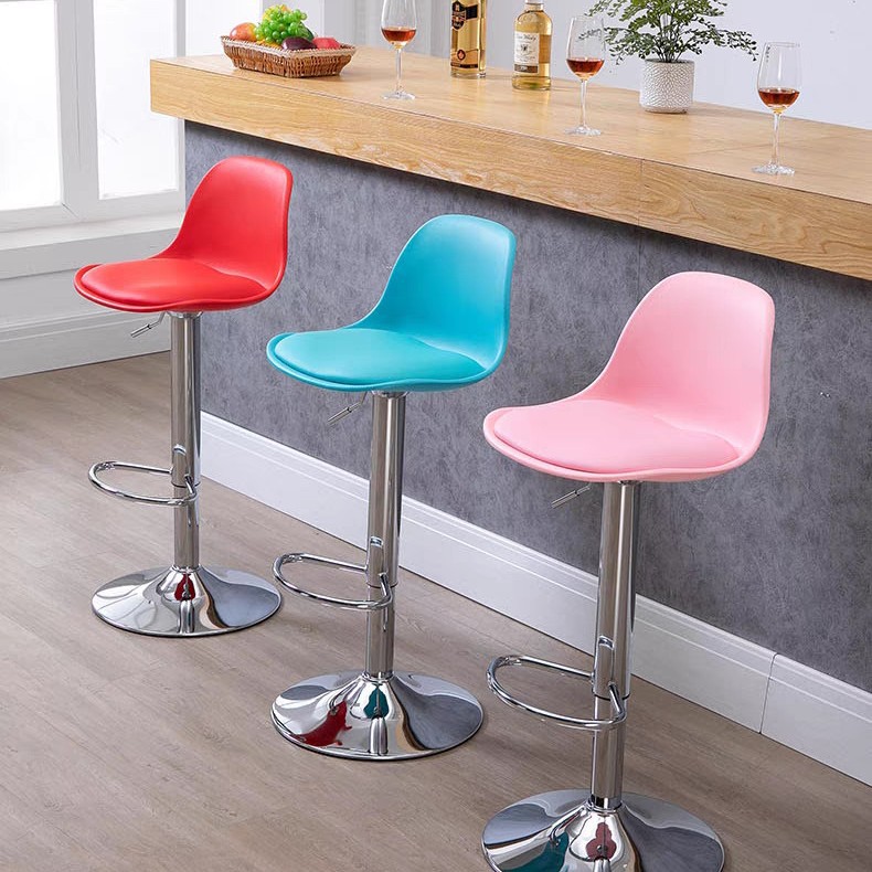 昇降可能な家庭用現代シンプルな回転背もたれの高い椅子のフロントには、銀の軽いバーの椅子があります。