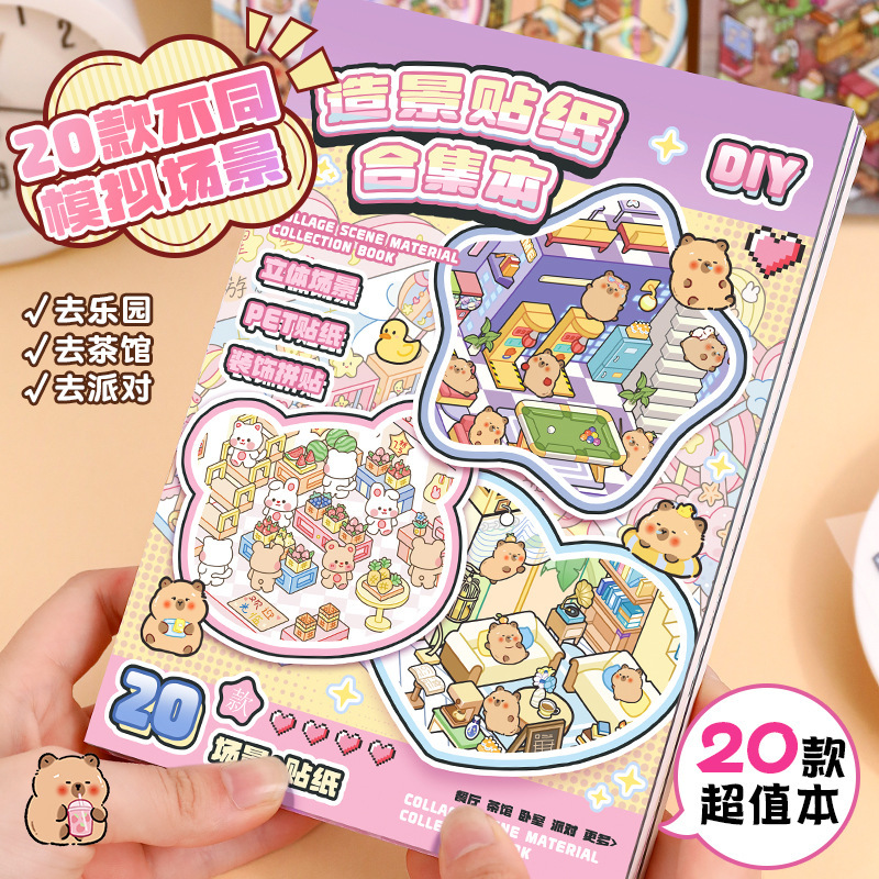 かわいい造園ステッカーブック 3D 立体シーン装飾コラージュ子供の漫画素材手作り小さなギフト賞品