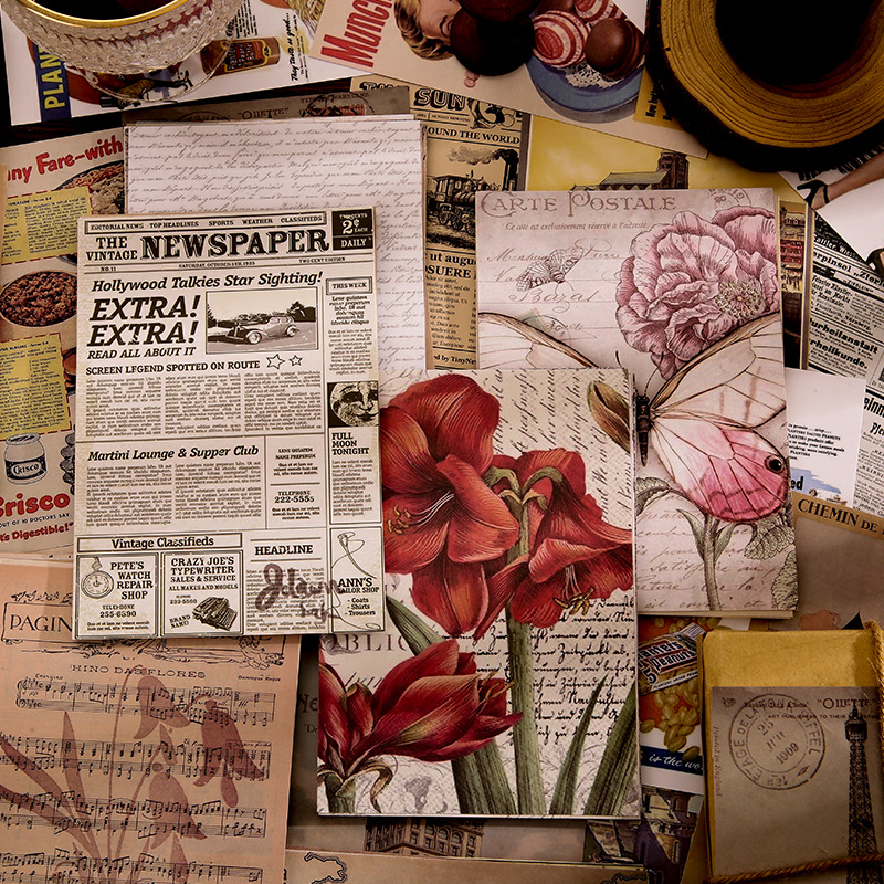 インス風レトロ手帳素材紙デコレーションステッカーDIY非粘着メモ英語新聞風背景手帳ステッカー