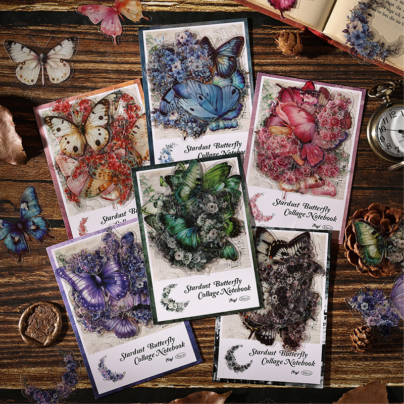 レトロな蝶のステッカー DIY ハンドブック カードデコレーションステッカー ins風造景素材 PET 子供用透明水筒ステッカー