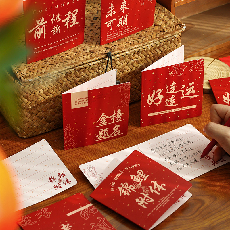 赤い錦鯉新年グリーティングカード中国風文字金カードはがき祝日メッセージ祝福カード便箋