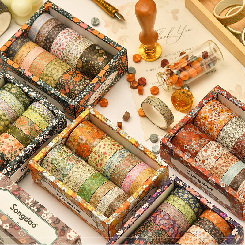 復古風と紙テープ模様シール帳カード素材コラージュdiy手帳日記装飾造景貼り