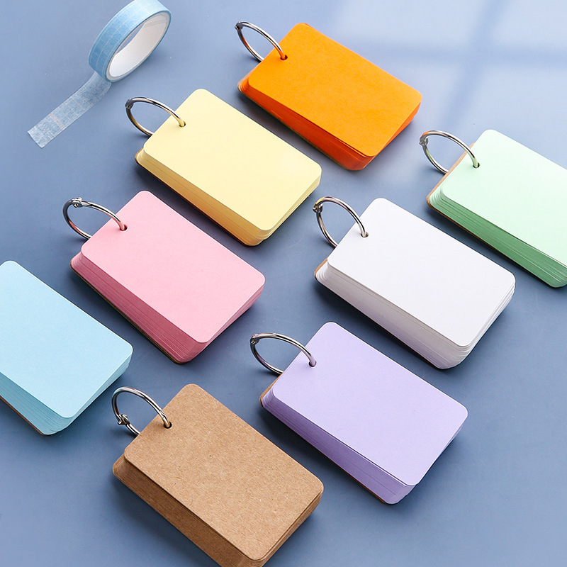 学生が付箋を付けるための空白のカラフルな小さなカード、ルーズリーフリングバックルブック、英単語カード、ポケットブック、子供用落書きカード