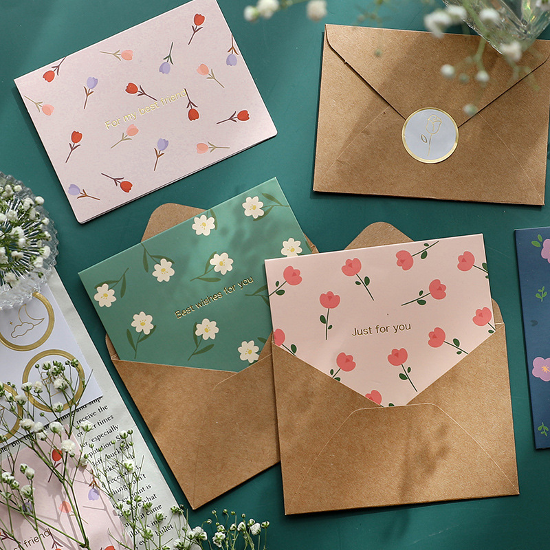 レトロなホリデーグリーティングカードメッセージ祝福小さなカード高級絶妙なポストカード封筒付き植物レターヘッドシールステッカー