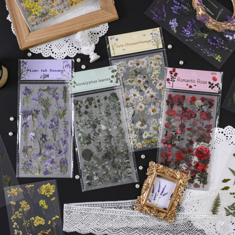 四季の花言葉 PETステッカー ハンドブック カード素材 DIYデコレーションステッカー 植物 花 景観 コラージュ 小さな模様