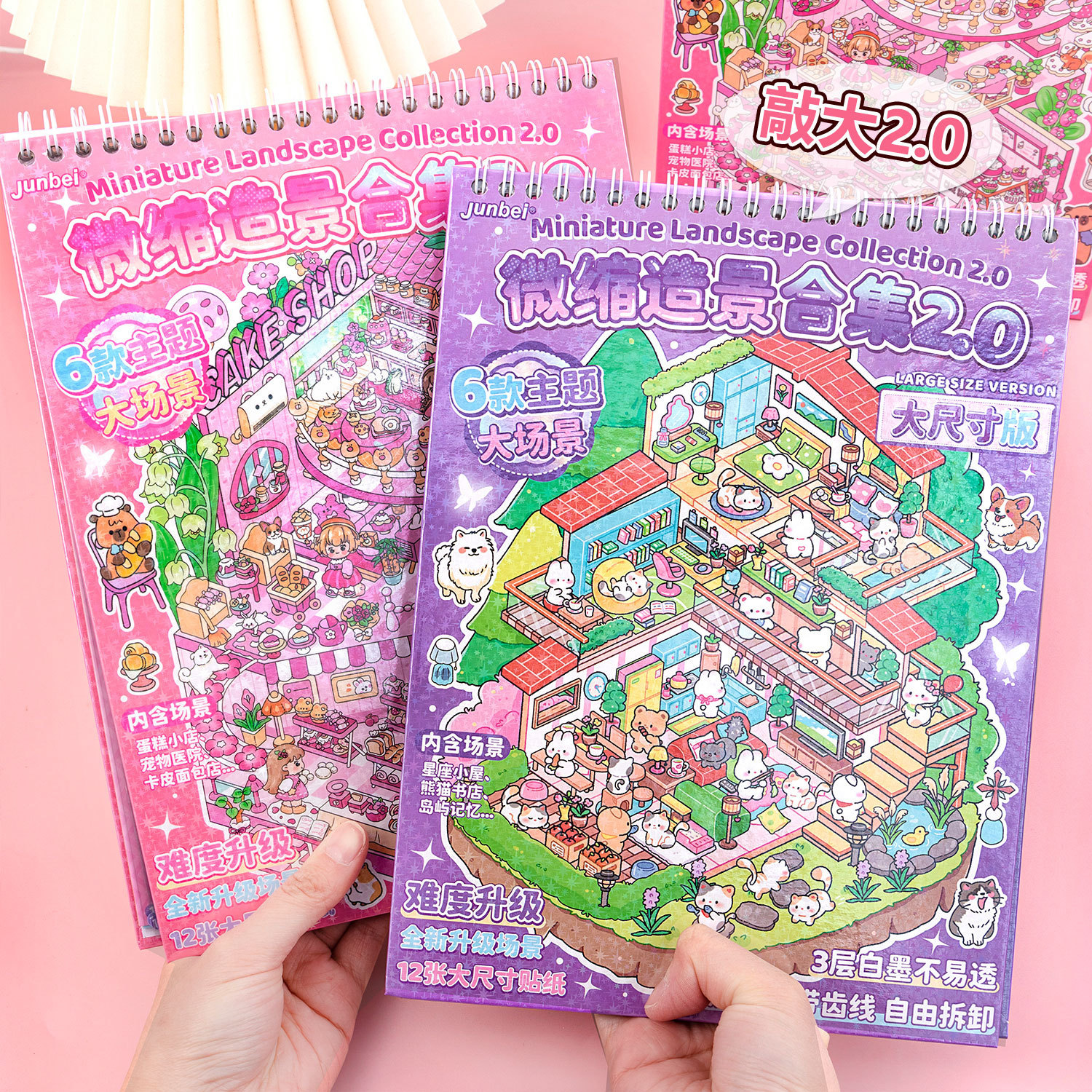 かわいい造景シール集本3d立体小屋ミニチュアシーンdiy装飾素材児童祝日賞品