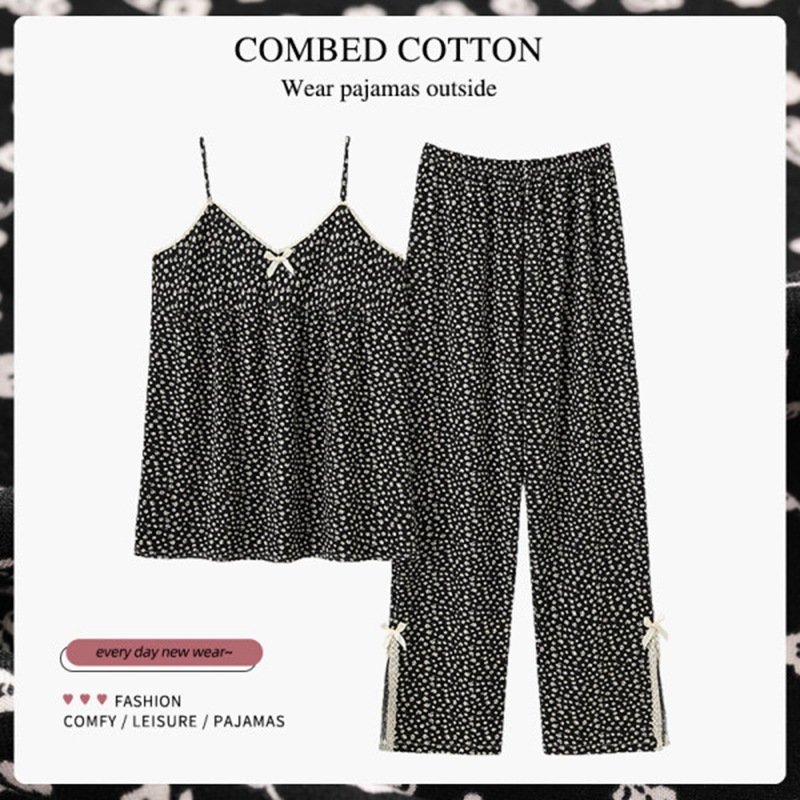 韓国版田園風の小さい花のガーターのズボンのパジャマの女性の夏のセクシーな涼しさは綿の快適な家庭服のスーツをまねます。