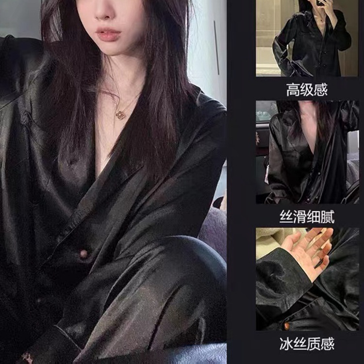 女性用パジャマ、春と秋のヘリンボーンツイル、3色の長袖パンツ、ラペル付き、軽くて豪華なスタイル、インターネットセレブ、外国貿易、クロスボーダーホームウェア