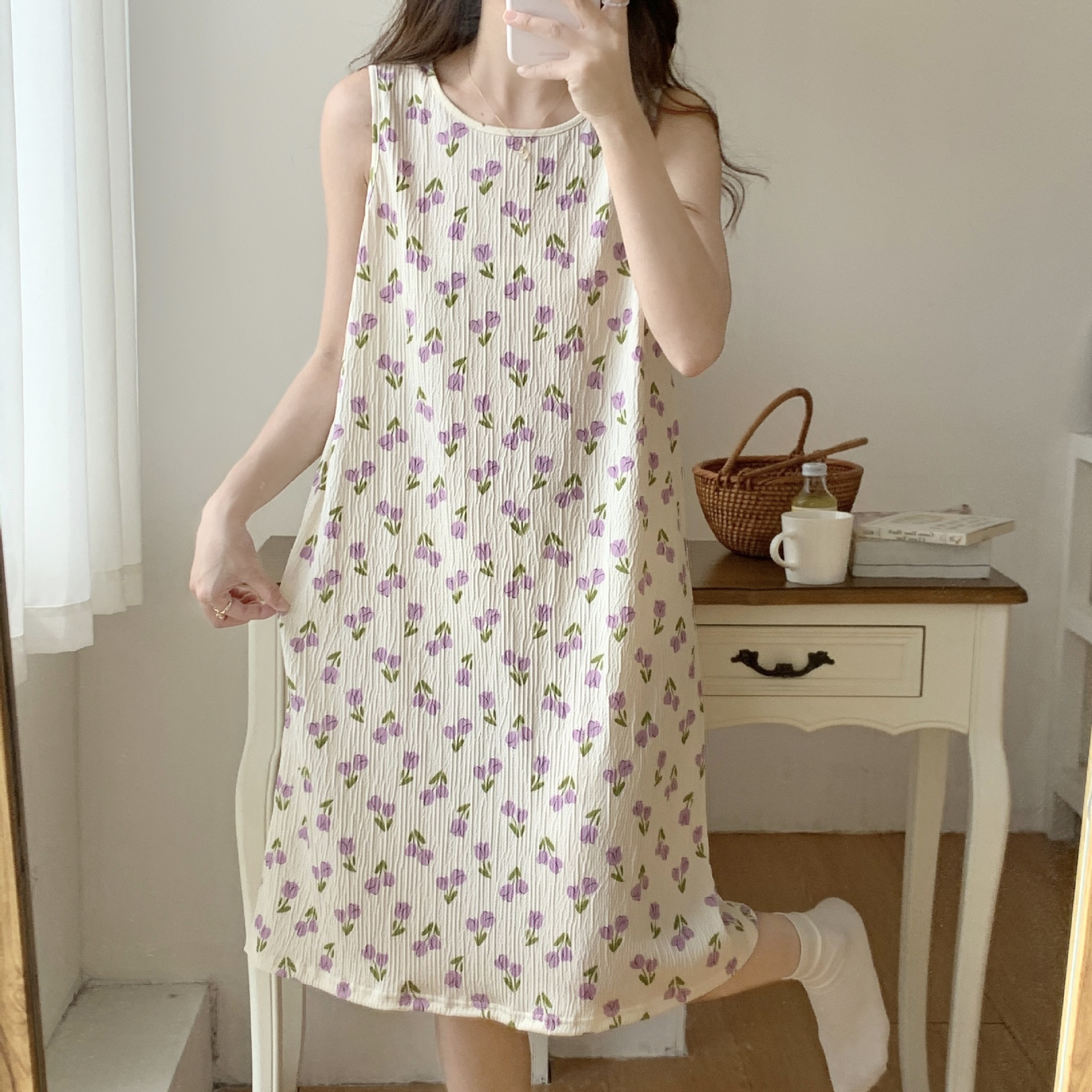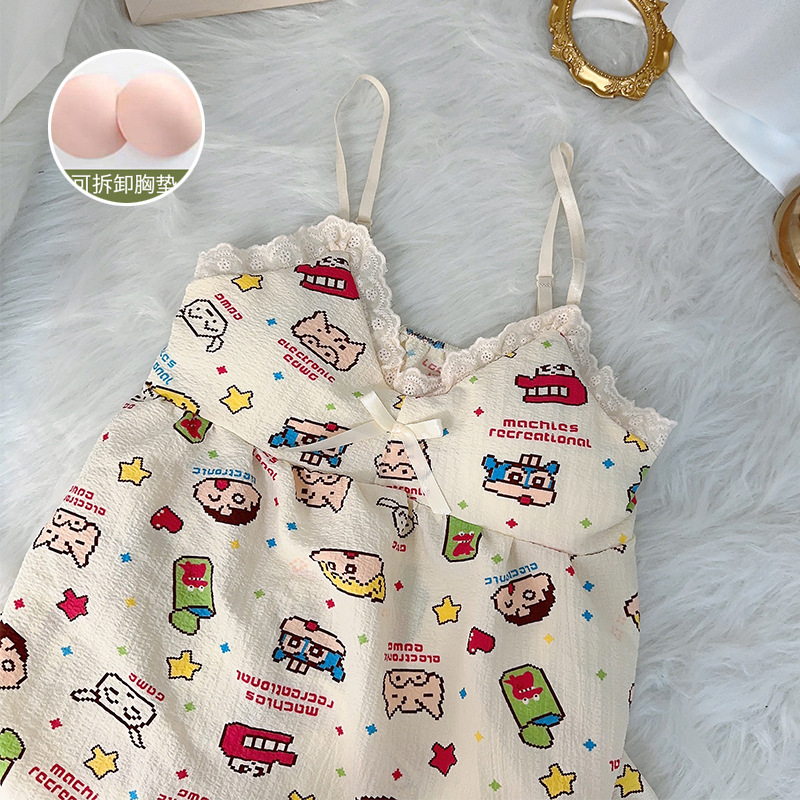 Ins寝スカート女夏韓国版画素しんちゃんと同じストラップ少女かわいいネット赤中長生中継泡綿
