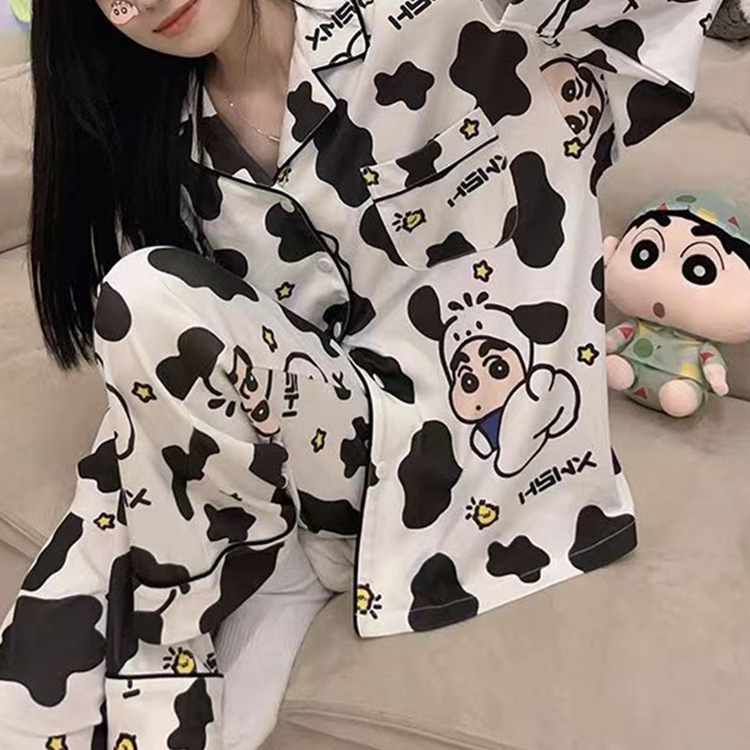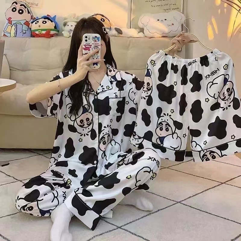 ネットの赤い生放送の漫画の日本のしんちゃんの乳牛の同型の半袖のパジャマの女性の夏のゆったりしている3つのセットのレジャーのスーツ