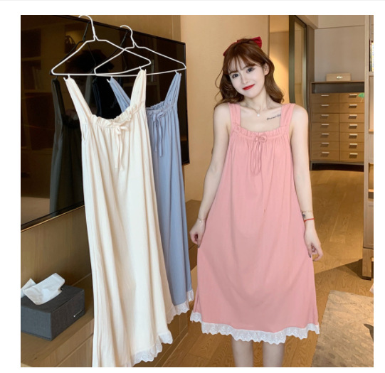 お姫様風ストラップ寝スカート女夏花辺の中の長さはシンプルでセクシーなミルク糸坑条対外貿易国境を越えた家服である