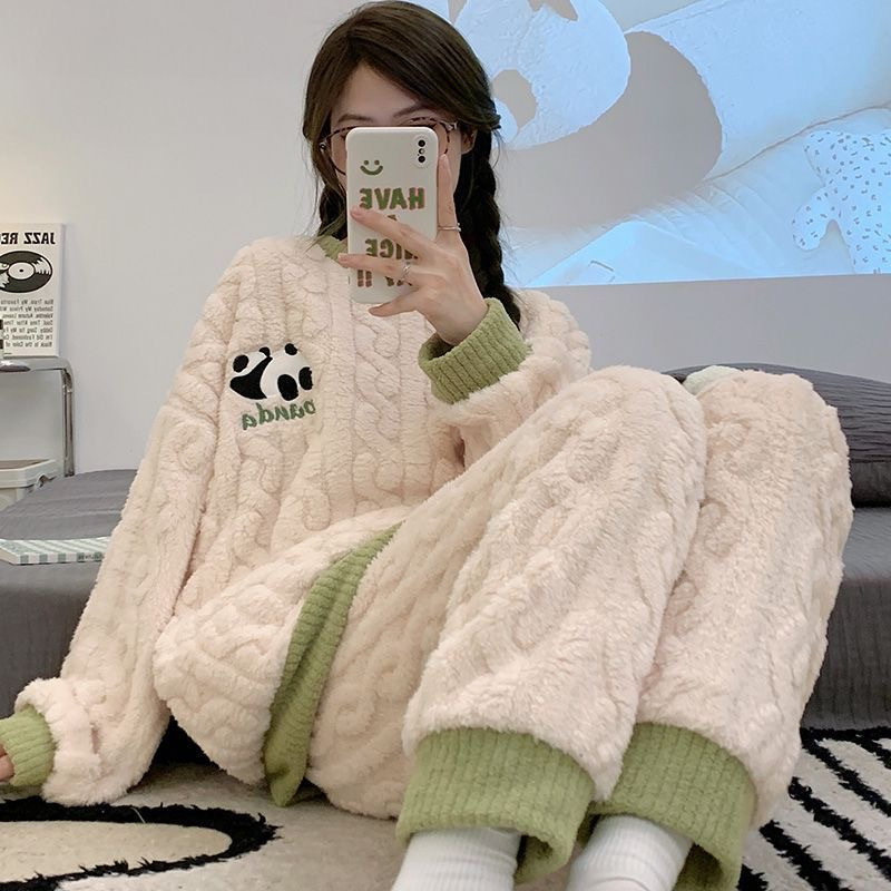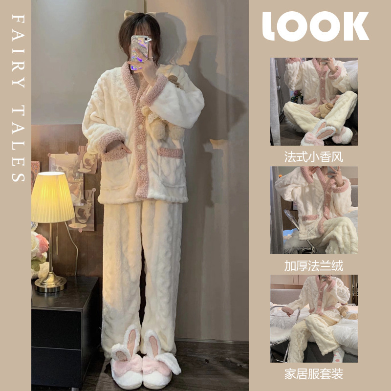 ネット赤首熊パジャマ女子秋冬フランネル甘い学生家庭中継対外貿易供給ベルベット保温