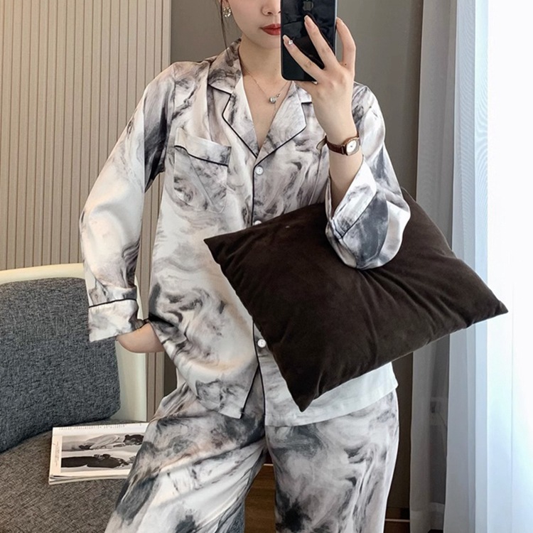 国風水墨画2025春のシミュレーションシルク長袖長ズボンパジャマ女性かわいい生放送国境を越えた対外貿易家服