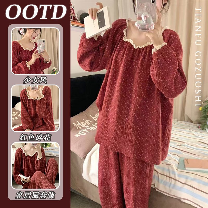田園風パジャマ女性春新作レース花長袖長ズボンクロスボーダー生放送東南アジアホームウェア