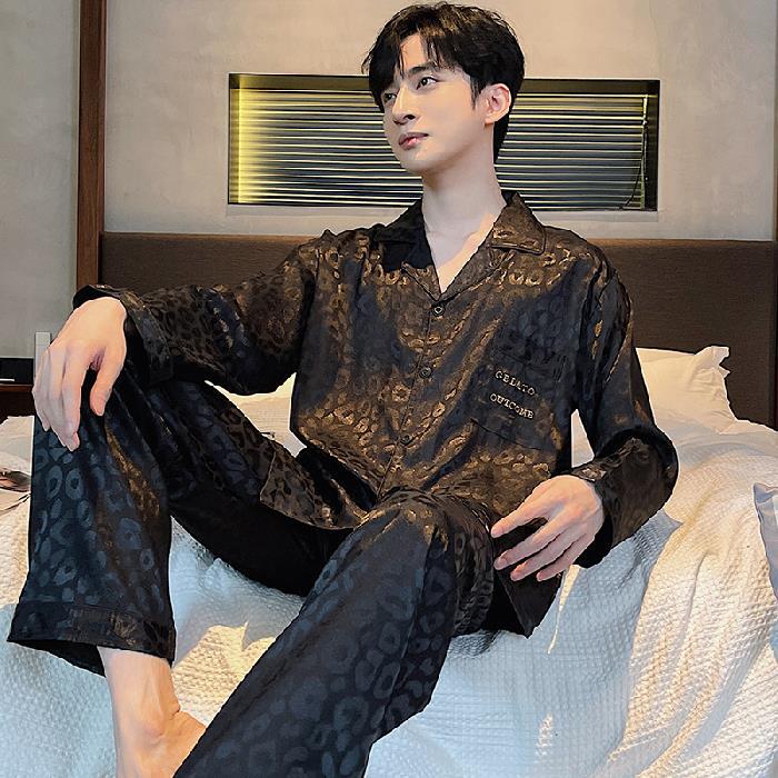 氷糸パジャマ男長袖春秋豹紋ジャカード軽贅沢ゆるい韓国版ゆるい180斤ホームウェアを着ることができる