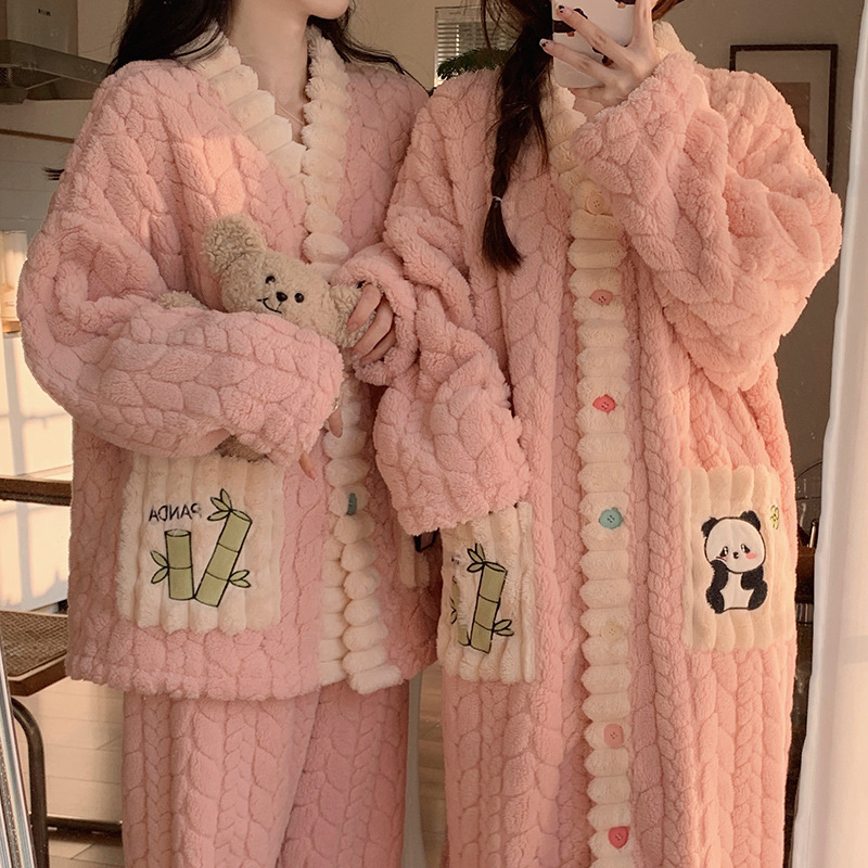 かわいいベアーの頭2023の新しいフランネルのパジャマの女性の秋冬の丸首はゆったりしていて厚い保温の部屋の服です。