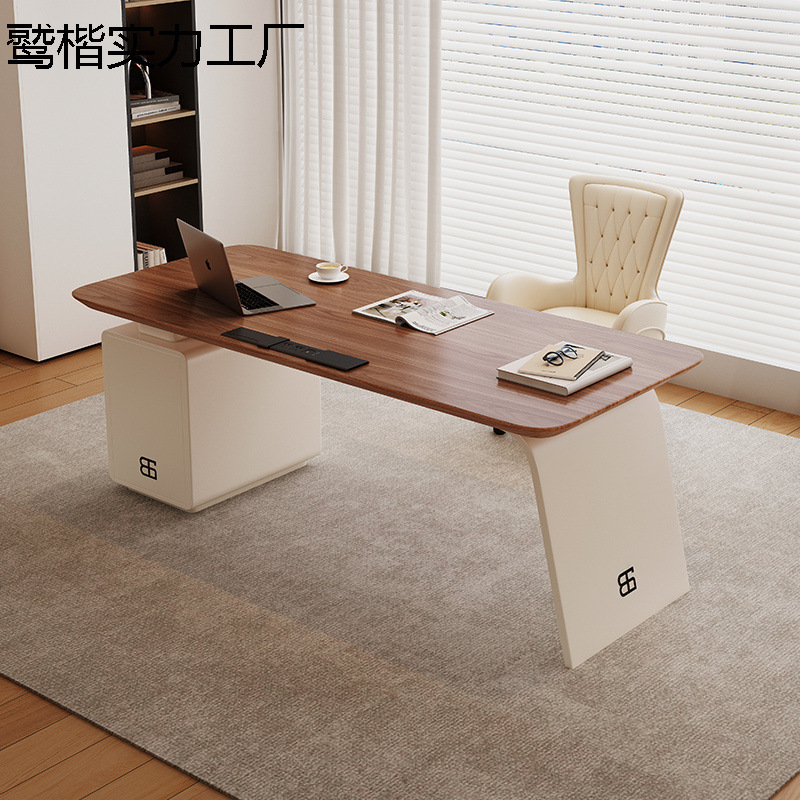 クリームの実木の机の家庭用の書斎はきわめて簡単で、現代の軽い豪華な事務机は簡単です。