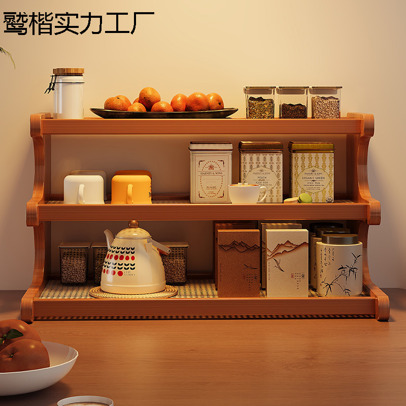 デスクトップ博古架小型実木中国式茶杯棚紫砂壺置き棚茶器茶卓上収納棚