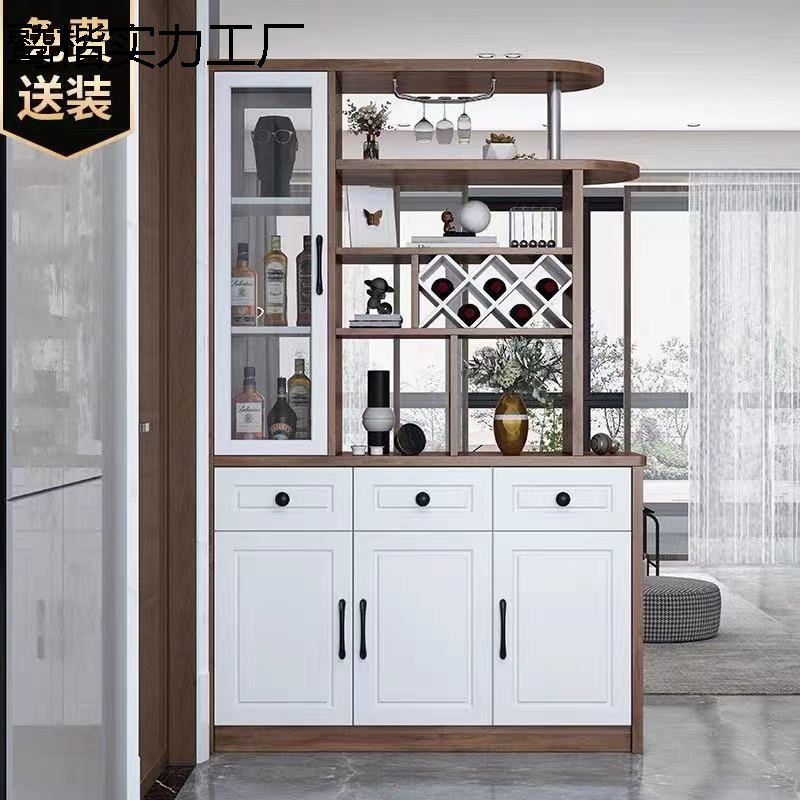 新しいリビングルームの玄関の仕切り棚のショーケースの下駄箱の一体両面の酒棚の入り口のホールの装飾棚