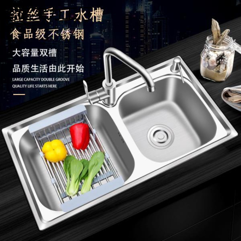 ステンレス水槽の二槽セットを一体成型して、手で野菜を洗う家庭用のシングルボウルの槽を厚くする