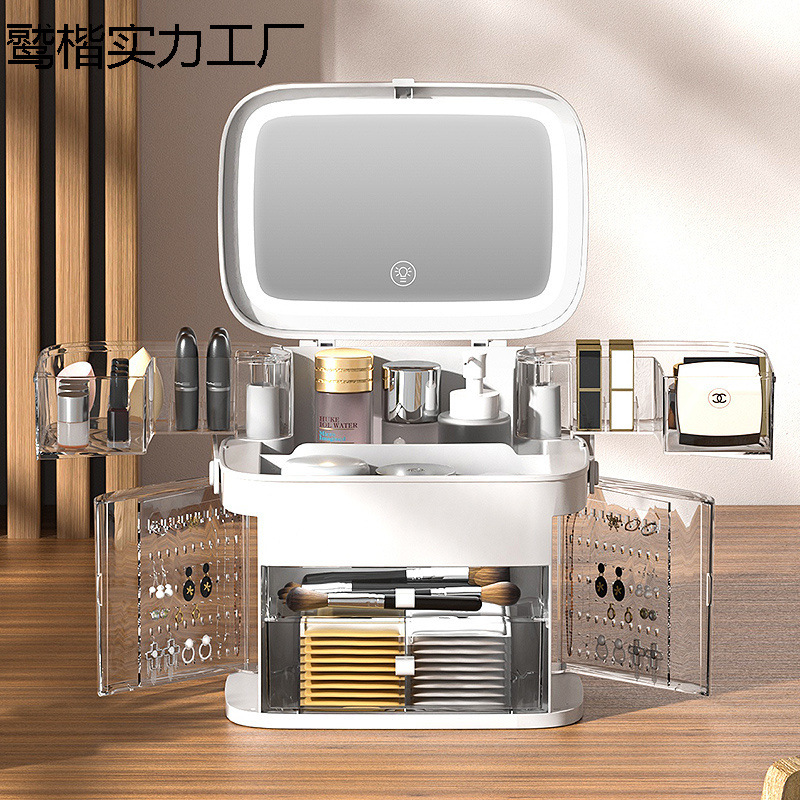 ネット赤鏡回転化粧品収納ケースデスクトップアクセサリー口紅化粧棚棚棚ライト付き防塵