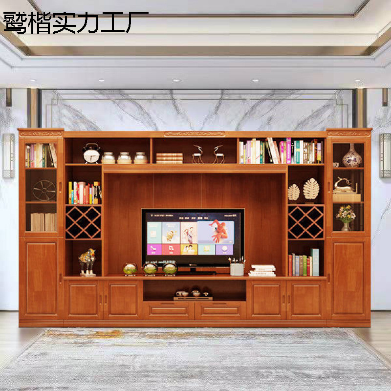 中国式ゴム木テレビキャビネット多機能大戸型リビングルーム背景壁キャビネット
