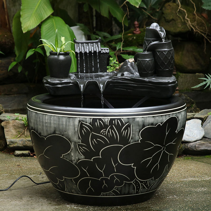 大型陶磁器流水水槽水筒ベランダ造景水循環水槽オフィス客間養魚水槽着地シリンダー