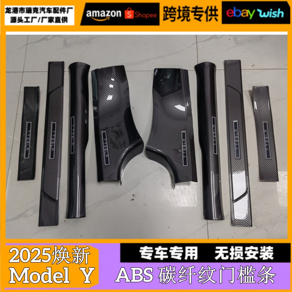 2025年式テスラモデルYドアシルストリップ、Y改造専用カーボンファイバーウェルカムペダル、リアガード内側