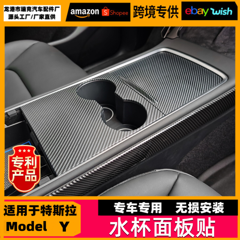 テスラmodel y 3水杯パネル計器台のドア装飾炭素繊維改造部品を適用します。