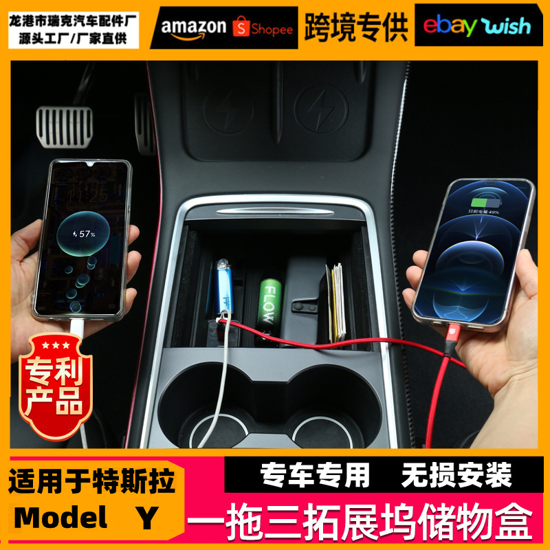 テスラmodel y 3を適用して、中央の手すりの箱を隠します。