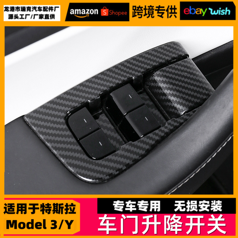 Tesilaテスラmodel 3 y炭素繊維ガラス昇降パネル装飾ボタンに適用