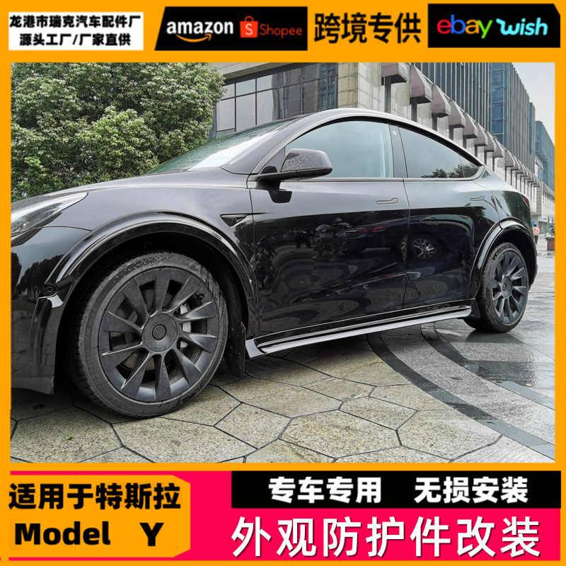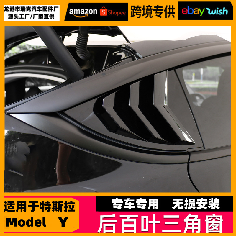 21種類のテスラモデルyブラインドガイド板に適用した後、三角窓に改造部品の装飾を貼る