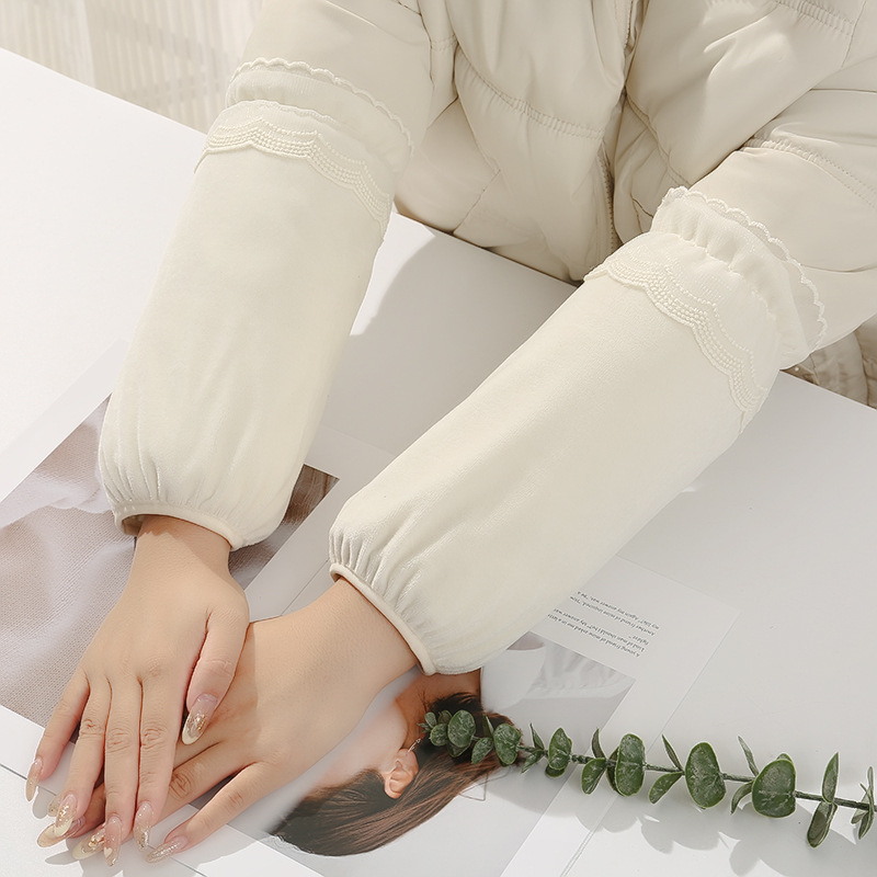 冬の新型女性の長い袖カバー女子韓国版かわいい刺繍ベルベットカバー袖汚れ防止袖頭