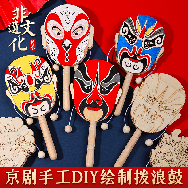 京劇フェイシャルメイクガラガラdiy無形文化遺産木製伝統文化無形文化遺産子供のおもちゃクリエイティブ塗装幼稚園