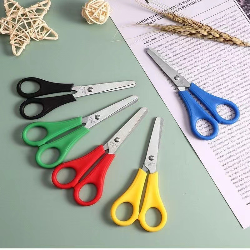 メーカーの現物ステンレスは目盛り付きの子供ハサミのカラープラスチックで学生の丸い頭を切って手で切って対外貿易をします。