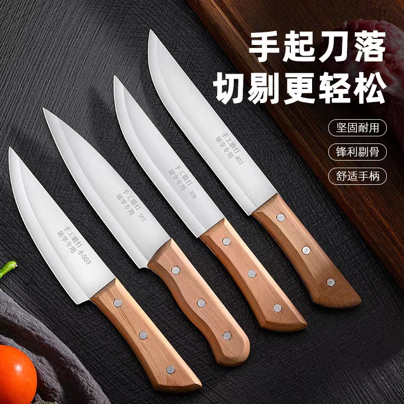現品の木の柄のステンレスは骨の刀を切ります。豚を殺して肉の牛肉の工場を売ります。