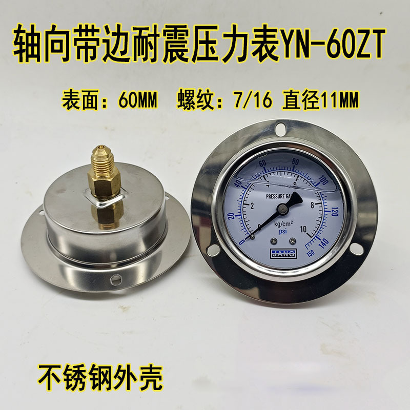 YN-60ZT軸方向エッジ付き耐震圧力計機械油圧計水圧計0-10kg 7/16ねじ