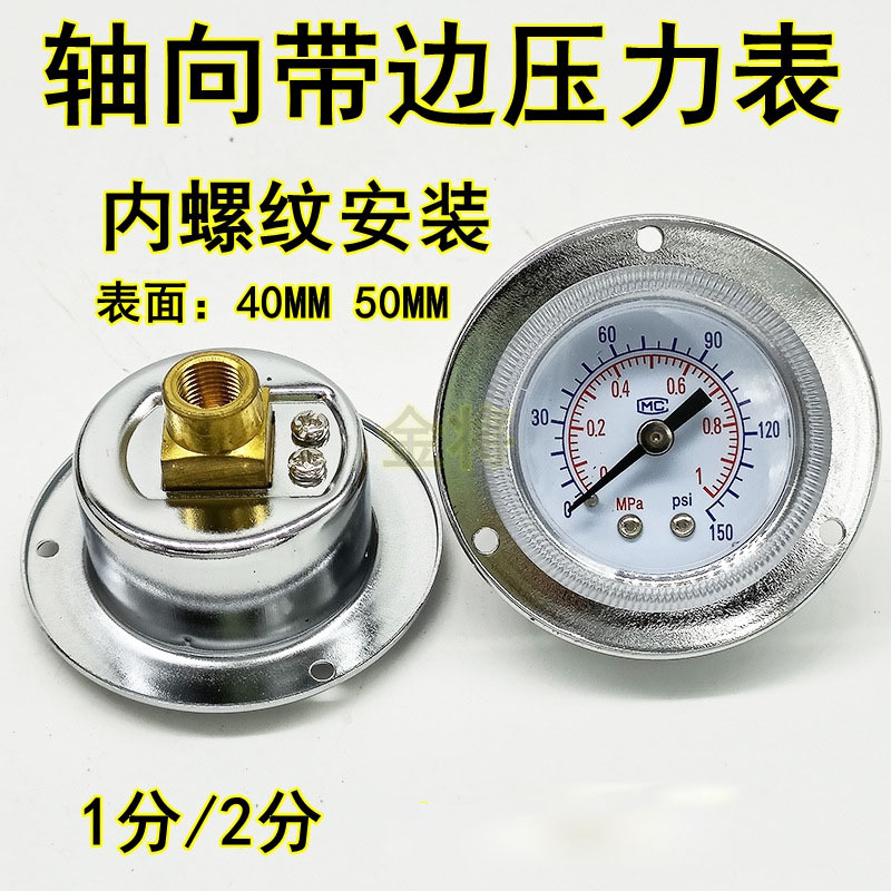 Y-40ZT/Y-50ZT軸方向エッジ付き圧力計内ねじ気圧計水圧計油圧計1/8 1分歯