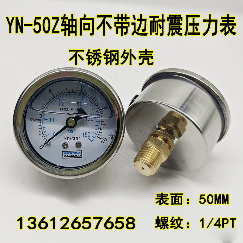 YN-50Zステンレスケース軸方向耐震圧力計耐震油圧油圧気圧水圧計0-10kg