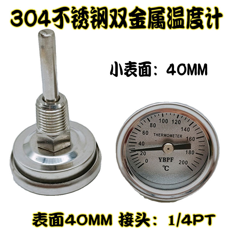 40mm小表面全ステンレス双金属温度計配管水温計0-100 150 200度