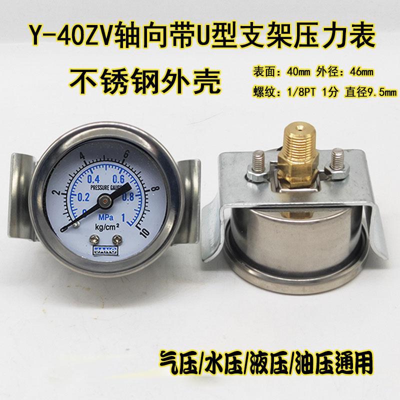 Y-40ZVステンレスケース軸方向ブラケット付き圧力計軸方向気圧計水圧計1/8油圧10kg