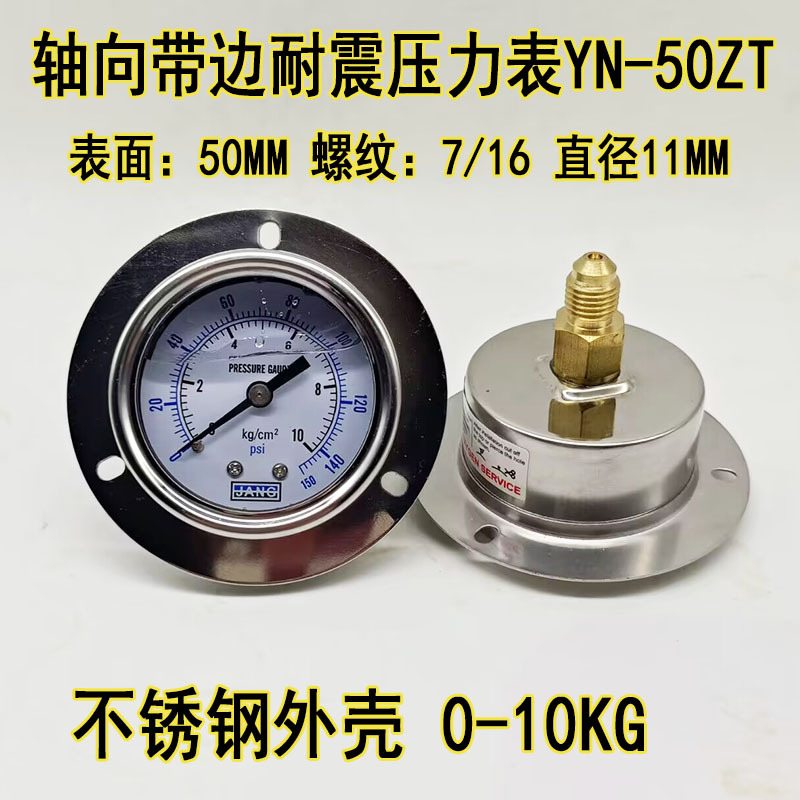 Yn50zt軸方向エッジ付き耐震圧力計油圧油圧計10kg美製7/16ねじステンレスケース