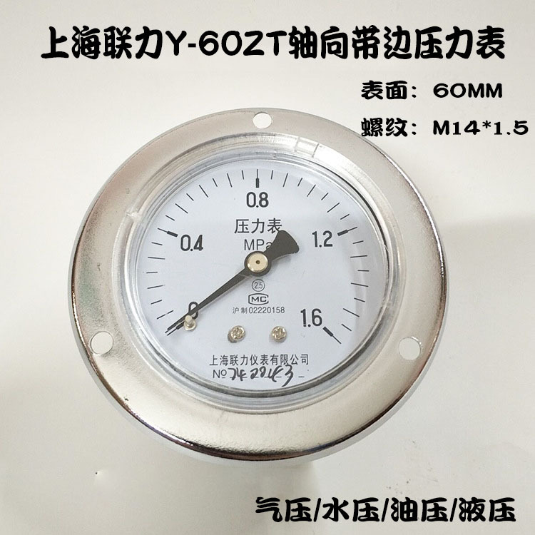 メーカー直販上海聯力y60zt軸方向エッジ付き圧力計真空計気圧計水圧計1.6mpa
