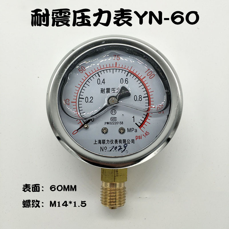 上海聯力YN-60耐震圧力計油圧計気水圧油圧計真空計-0.1-0 1.6mpa